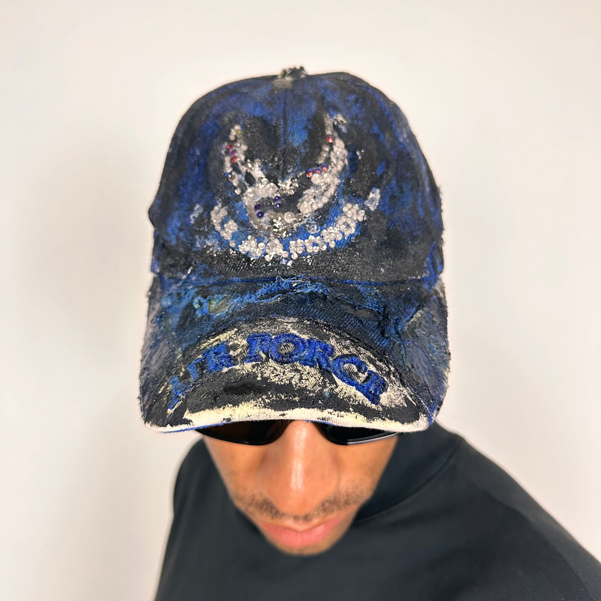 Air Force Blue & Black Distressed Rhinestone Hat