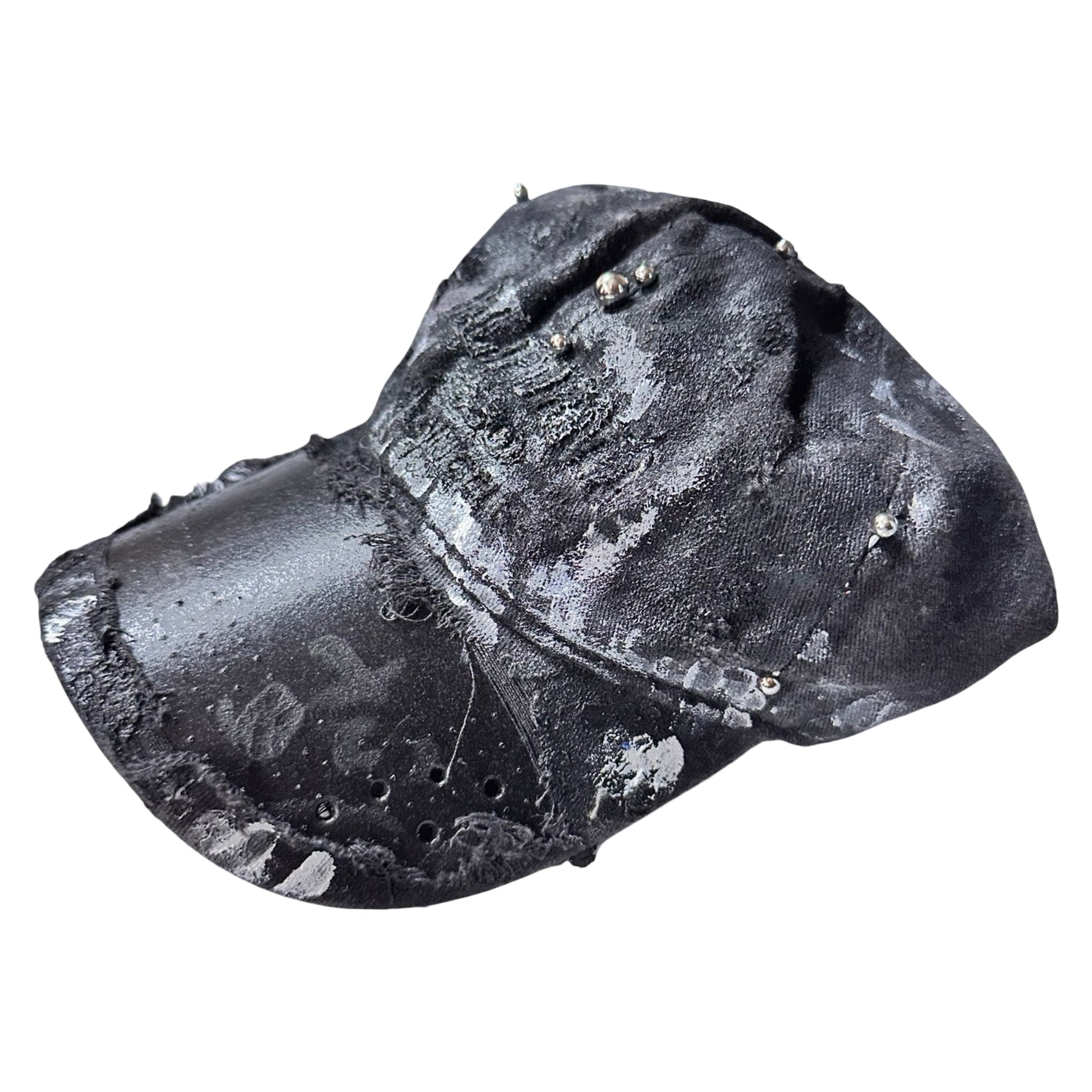 ASTROBOI* 'Cali' Black Painted Pierced Distressed Hat