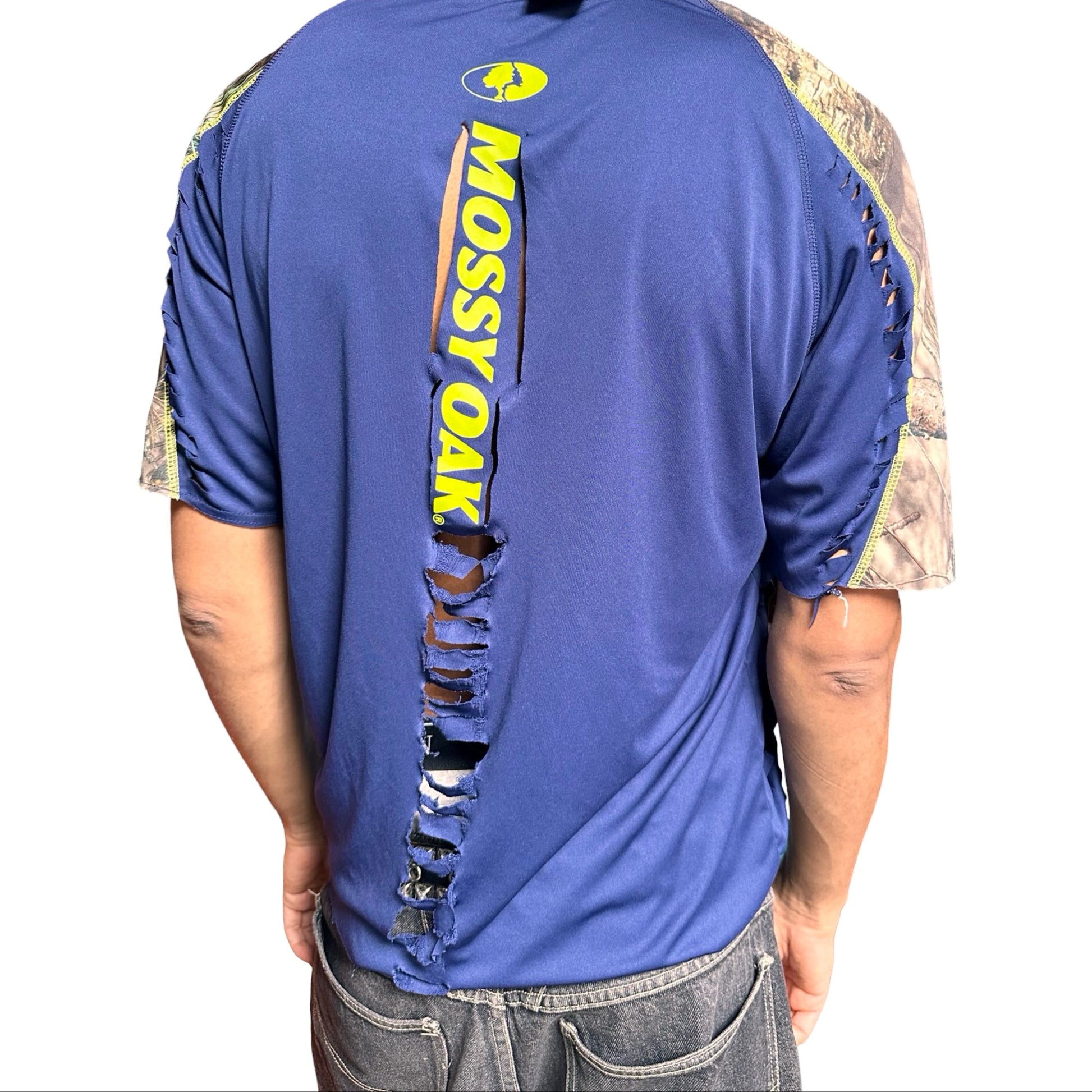 ASTROBOI* x Mossy Oak 'Realtree' Blue Camo Cut-Out Athletic T-Shirt – XL