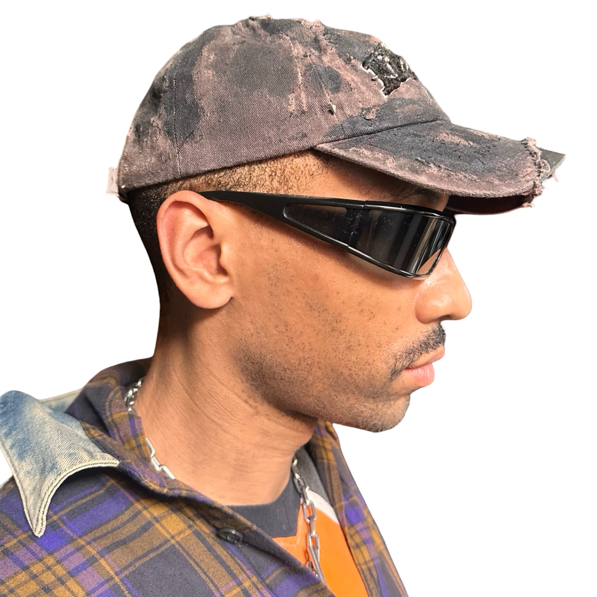 ASTROBOI* NEW YORK 'Soil' Brown & Black Distressed Pierced Hat