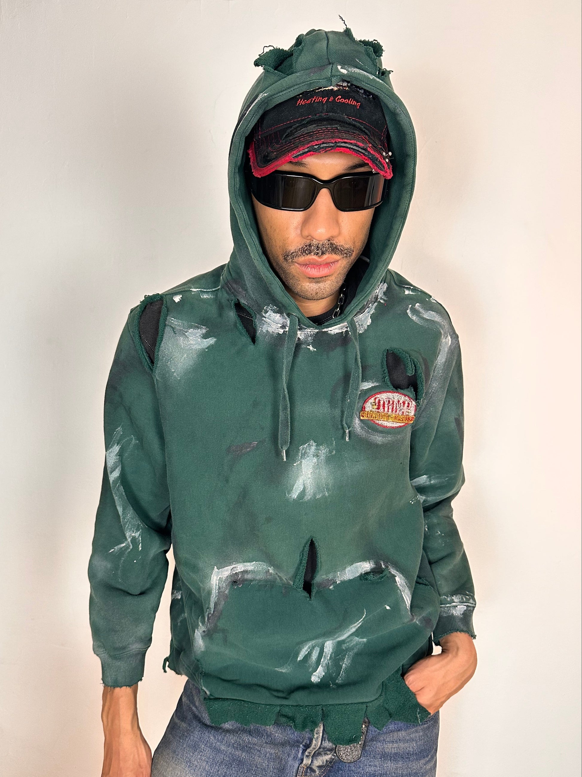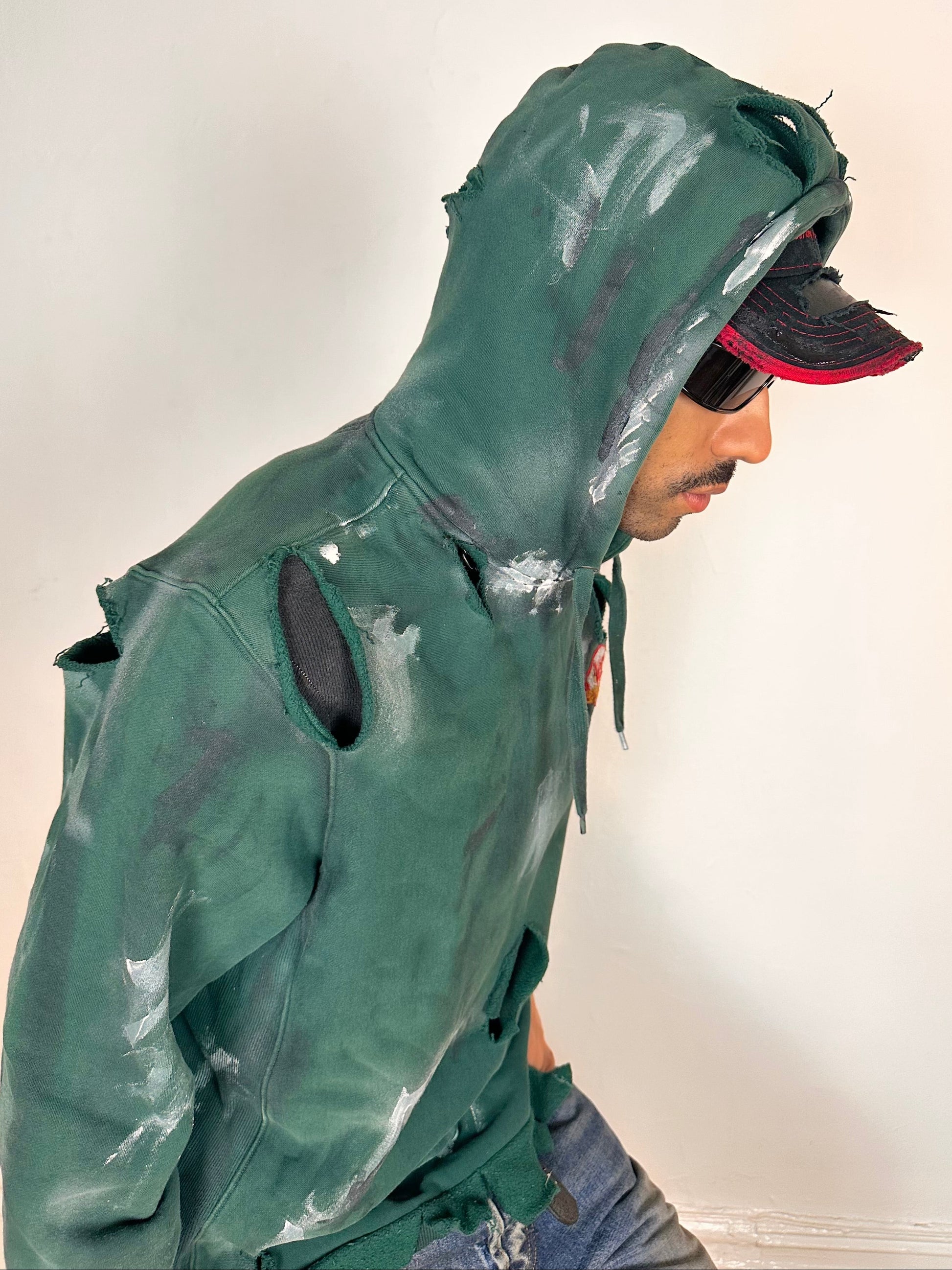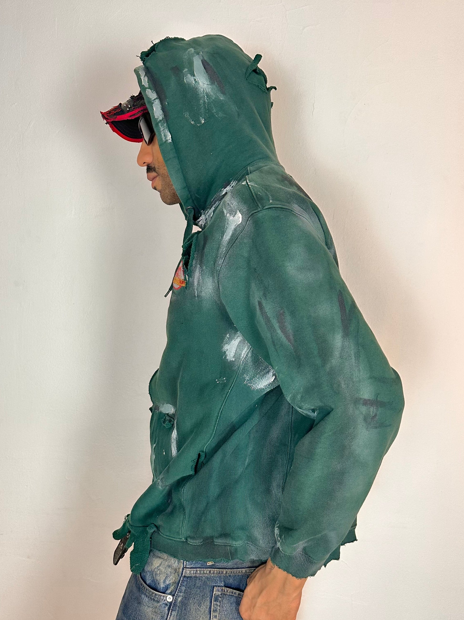 Green Heavyweight Oversized Painted Utility Hoodie – Medium