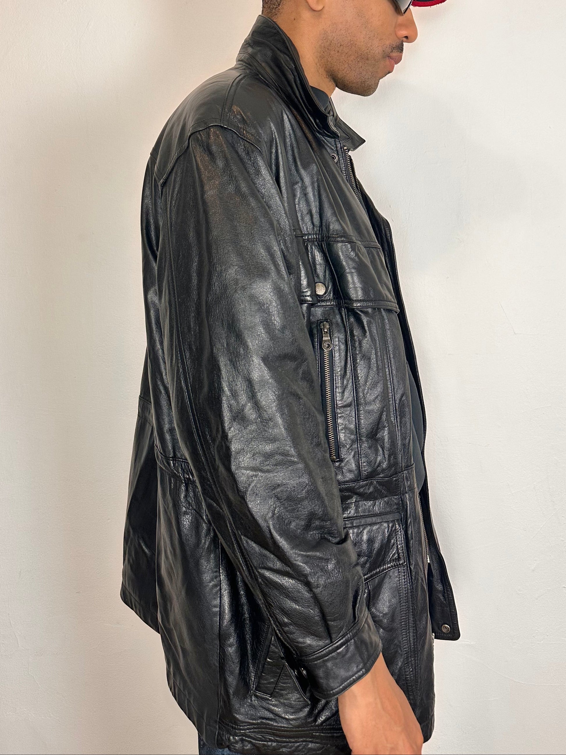 Vintage Global Identity Black Retro Aviation Leather Jacket - Medium